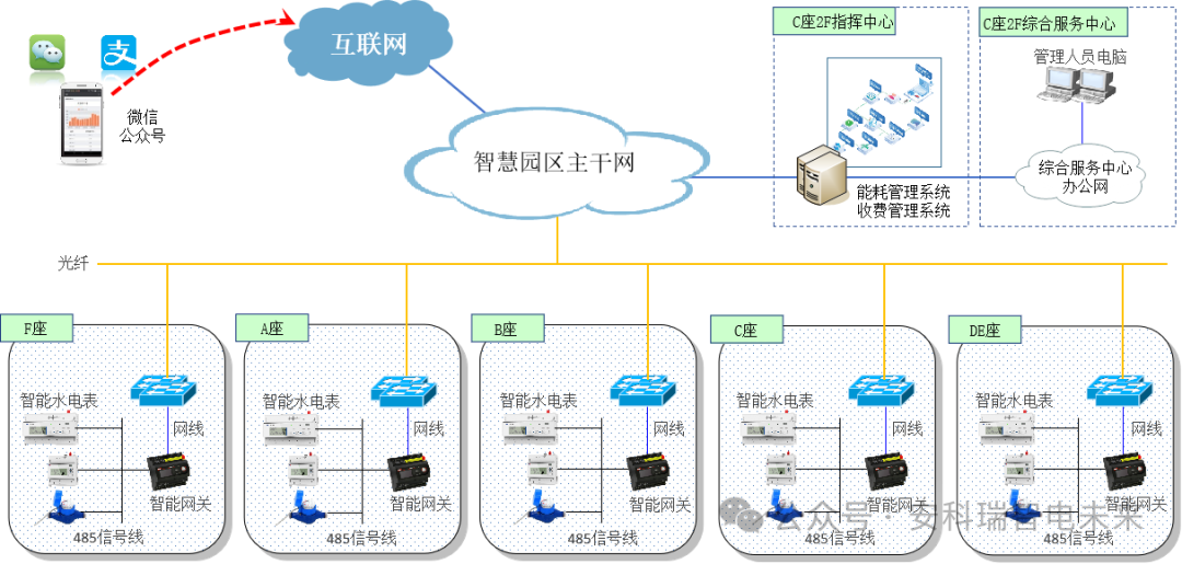 辦公、商業、配套服務一體化,人工抄表、設施計量缺失、漏水排查難。通過智能化改造,實現水電表遠程自動抄讀,新增80+處關鍵設施計量點,搭建微信繳費平臺,既提升了管理效率,又讓租戶享受到便捷服務,還實現了節能降耗。