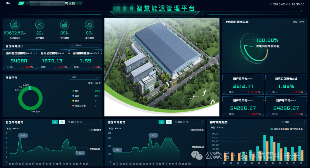 總部可實時掌握各園區、各租戶的用能情況、能耗趨勢、公區占比,為節能改造、碳管理、資產優化提供堅實數據支撐。